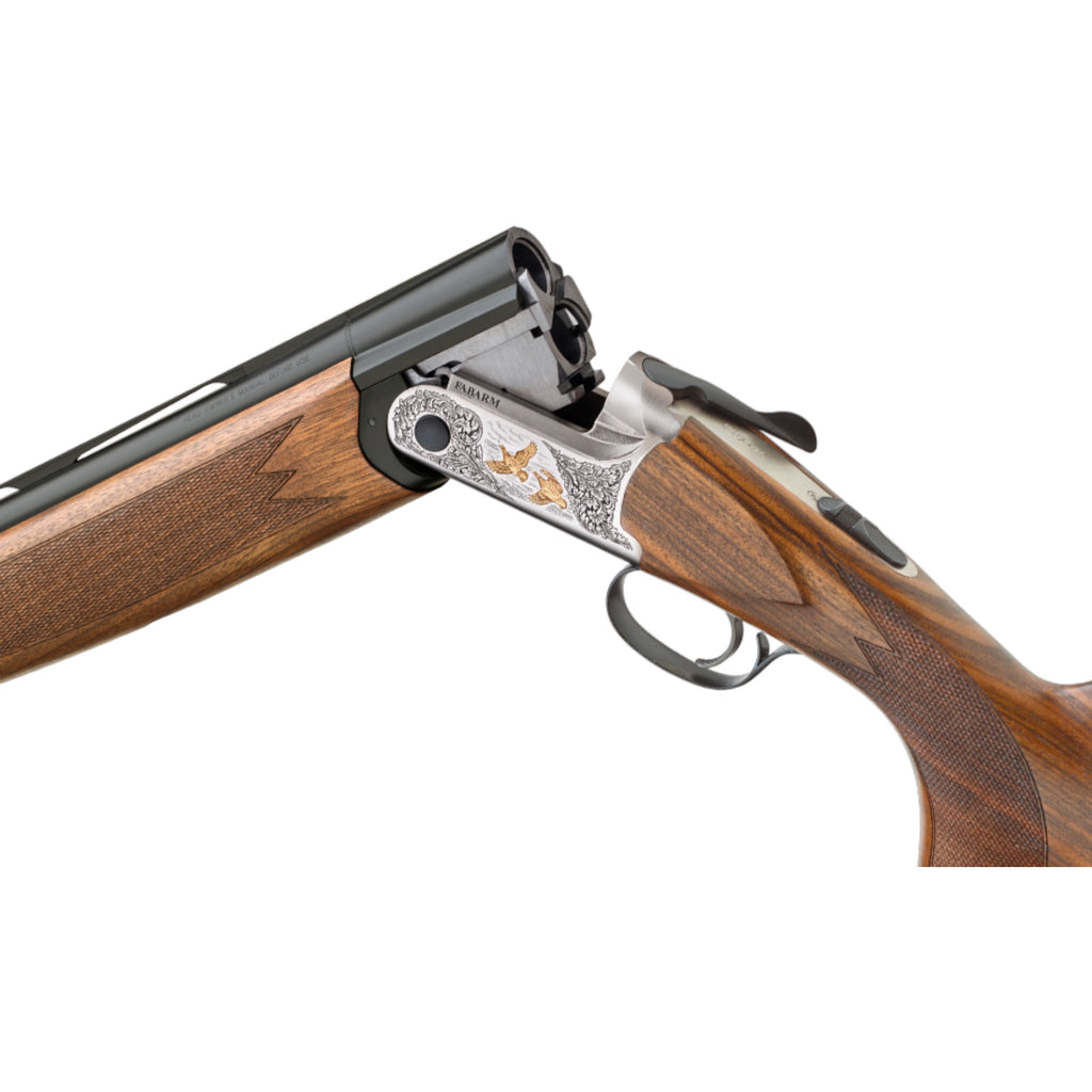 Se trata de una escopeta de alta gama, diseñada con un nivel superior de precisión y atención en cada uno de sus componentes. El recubrimiento en oro de 24 quilates realza con exactitud la fineza del grabado y las líneas equilibradas de la báscula, aportando un acabado distintivo y exclusivo.