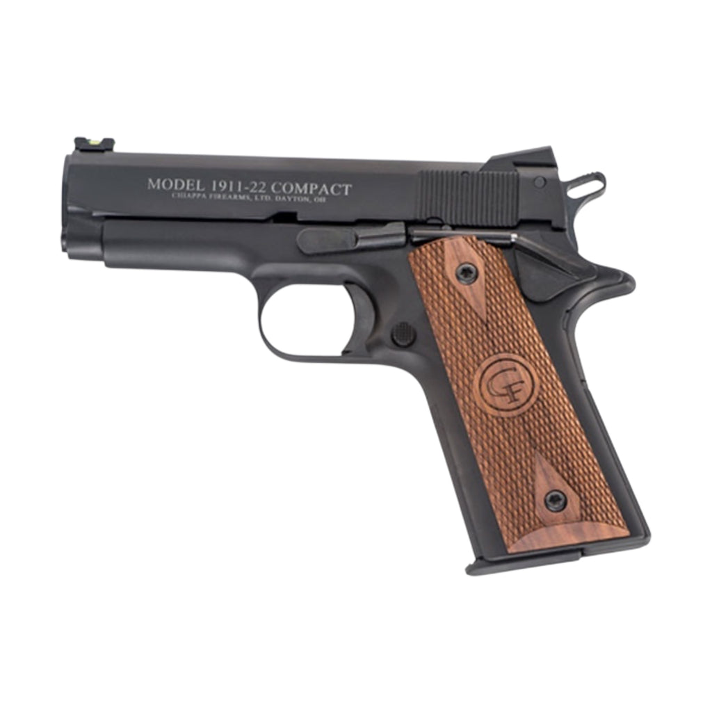 La Chiappa 1911-22 Compact calibre .22 LR ofrece el diseño clásico de la plataforma 1911 en un formato más ligero, compacto y fácil de manejar.