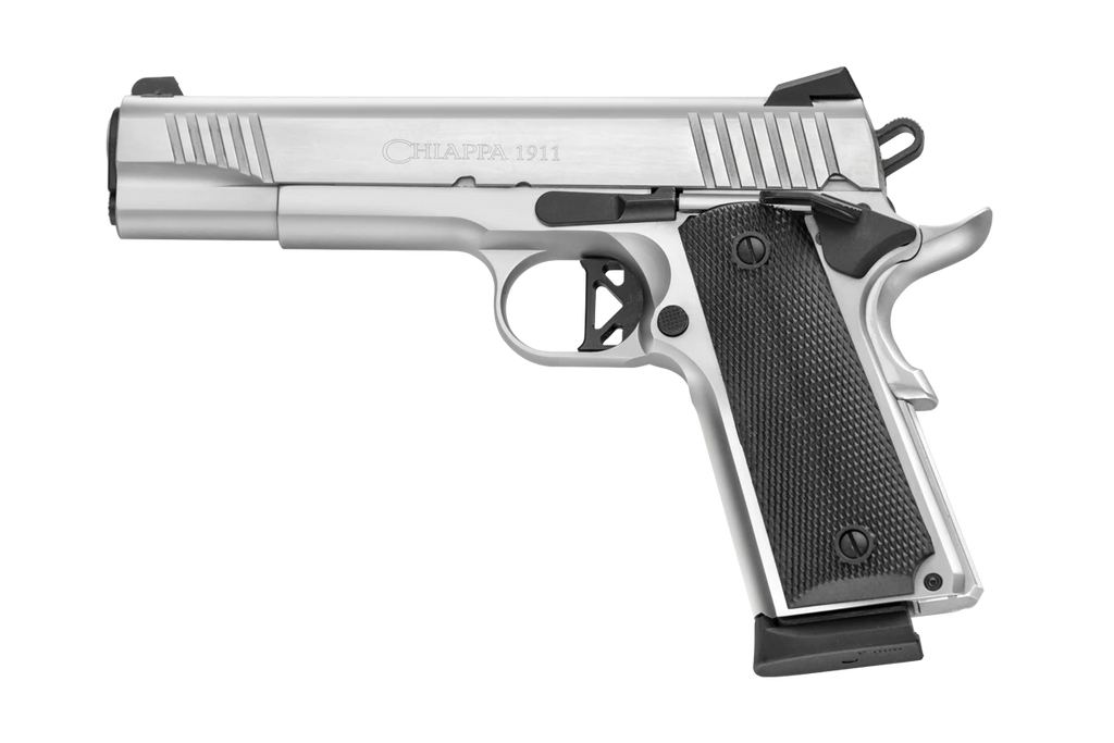 La Chiappa 1911 Superior Chrome calibre .45 ACP combina el diseño clásico de la plataforma 1911 con un acabado elegante y distintivo.